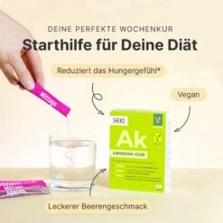 Mach Dich ganz einfach auf den Weg zu Deinem „Wohlfühl-Ich”. Ohne Hungern & Stress. Dafür mit Leichtigkeit & Genuss. Du erhältst unseren Abnehm-Guide als Taschenbuch, der Dich mit vielen wertvollen Infos und Tipps zum Start unterstützt und unter anderem leckere Rezeptideen und einen Ernährungsplan zum Ausfüllen beinhaltet. Dieses Set hilft Dir dabei, die nächsten 3 Monate mit unseren Balance Shakes durchzustarten.🚀 Zur Umstellung in der ersten Woche unterstützt Dich die Abnehm-Kur mit zusätzlicher Sättigung. Mit den 28 praktischen Travelpacks kannst Du Dich zu Hause oder unterwegs jeweils vier Mal durch unsere sechs beliebten Klassikersorten des Balance Shakes probieren und dabei noch zwei zwei limitierte Überraschungssorten probieren. Dabei bist Du bestens versorgt mit hochwertigen Nährstoffen und 27 Vitaminen und Mineralien. Der enthaltenen Shaky Shaker sorgt für besondere Cremigkeit!