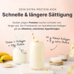 FĂŒgst Du tĂ€glich 10 g Naked Kollagen in einen Deiner Shakes hat dieser ca. 30 g Protein. Protein gilt als effektiver, natĂŒrlicher AppetitzĂŒgler. Verschiedene klinische Studien (2,3) haben die sĂ€ttigende Wirkung zur Förderung der Gewichtsabnahme nachgewiesen. Ersetzt Du tĂ€glich eine zweite Mahlzeit mit einem Balance Shake ohne Kollagen, hast Du einiges an Kalorien eingespart, die Dir zu einem gesunden Gewichtsverlust verhelfen.